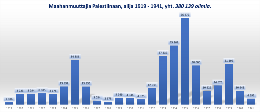 Britannian mandaattiajan ja toisenmaailmansodan alija-lukuja. Sekä varhaisalijan määriä.