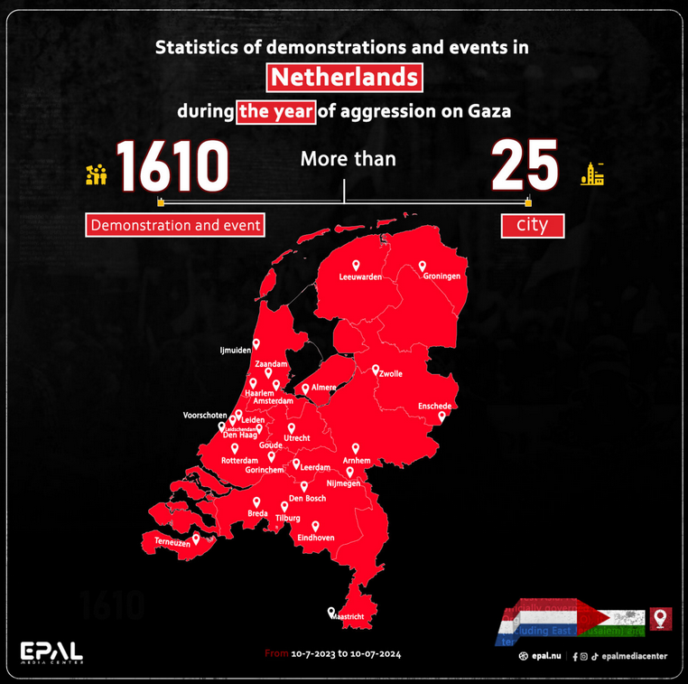 Euroopassa on meneillään islamisaatio, joka johtuu päivittäisestä pakolaistulvasta, ja lisäksi mantereella on 7. lokakuuta lähtien järjestetty tuhansia palestiinalaisten ja heidän kannattajiensa järjestämiä mielenosoituksia ja yleisen järjestyksen häiriöitä. Nämä mielenosoitukset tarjoavat hedelmällisen maaperän terrorismille ja vandalismille, varsinkin kun mielenosoittajat peittävät kasvonsa ja herättävät pelkoa ja kauhua kansalaisten keskuudessa. Eurooppalaisten viranomaisten on säädettävä lakeja näiden mielenosoitusten hillitsemiseksi. Saksa on alkanut rajoittaa niitä, mutta tuloksia ei vielä nähdä. Mielenosoitukset sisältävät usein juutalaisia ja Israelia kohtaan suunnattuja uhkauksia, ne pidetään usein arabiaksi ja ne häiritsevät kansalaisia ja yleistä järjestystä. Eurooppalaisten on estettävä Lähi-idän sodan leviäminen Euroopan alueelle, sillä se vaarantaa Euroopan kansallisen turvallisuuden. Viranomaisten on myös varmistettava, että Euroopassa asuvia maahanmuuttajia ei aivopestä tai värvätä palestiinalaisten asiaan.