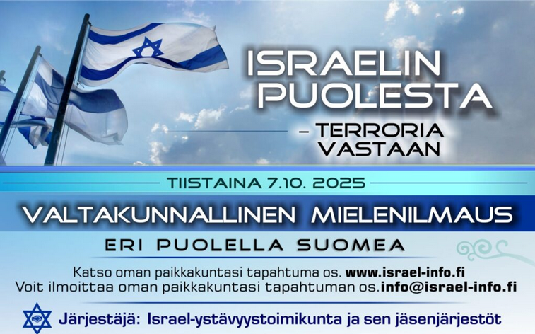 Israelin rinnalla - terroria vastaan Kouvolassa 7.10.2025 klo 16–17