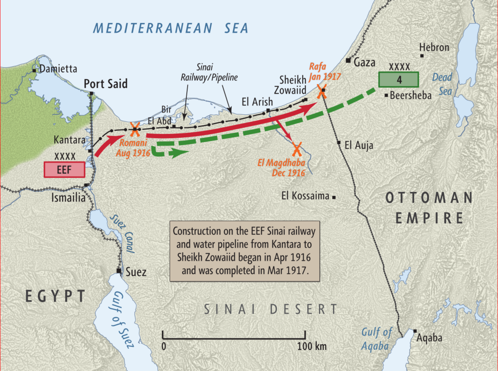 Siinain sodan onnistuneesti päättyessä Egyptin erikoisjoukot (EEF) ja sen komentaja, kenraaliluutnantti sir Archibald Murray olivat saavuttaneet alkuperäisen tavoitteensa - turvata Suezin kanava mahdollisilta Turkin hyökkäyksien uhkilta. Tämä voitto johti Ison-Britannian hallituksen paineeseen uuden pääministerin David Lloyd Georgen alaisuudessa tunkeutua ottomaanien hallitsemaan Palestiinaan. Lloyd George vaikuttui erityisesti suhteellisen vähäisistä uhreista, jotka olivat seuranneet Murrayn voittoja autiomaassa, verrattuna verisiin epäonnistumisiin, jotka Britannian armeija kärsi länsirintamalla vuonna 1916.