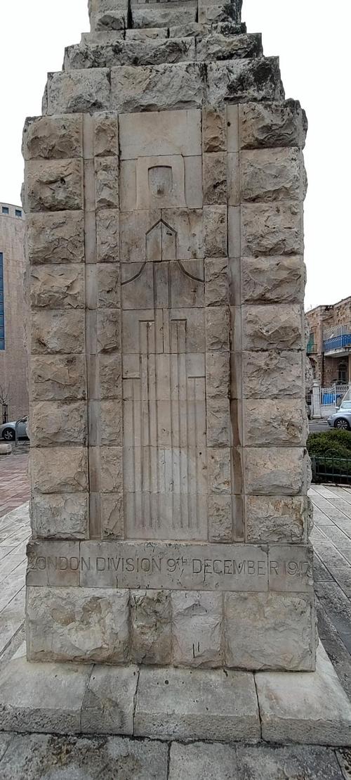 Tämän paikan lähellä Pyhä kaupunki luovutettiin Lontoon 60. divisioonalle 9. joulukuuta 1917. Toverit pystyttivät muistomerkin niille upseereille, aliupseereille ja miehille, jotka kaatuivat taisteluissa Jerusalemin puolesta.
