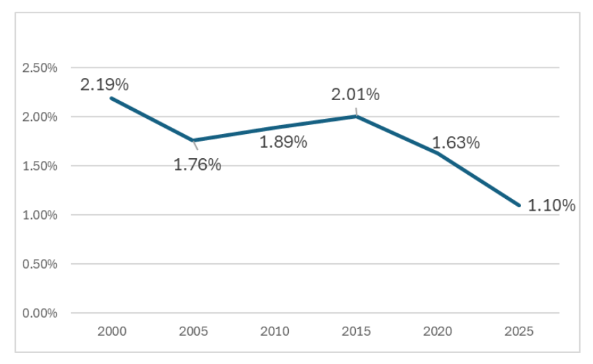 Israelin väestönkasvun ennustettiin laskevan 1,1 prosenttiin vuonna 2025 ensimmäistä kertaa valtion perustamisen jälkeen, mikä merkitsee jyrkää väestörakenteen muutosta. Tutkijat pitävät hidastumista kolmen tekijän seurauksena: väestön ikääntymisen myötä kasvava kuolleisuus, negatiivinen nettomuutto ja heikentynyt hedelmällisyys. Israelilainen Taub Center for Social Policy Studies -tutkimuskeskus raportoi, että Israel on astunut uuteen väestörakenteen aikakauteen: poikkeuksellisen korkean luonnollisen väestönkasvun pitkä kausi on päättynyt, ja muuttoliike on nyt paljon merkittävämpi tekijä hedelmällisyyden heikentyessä ja väestön ikääntyessä.