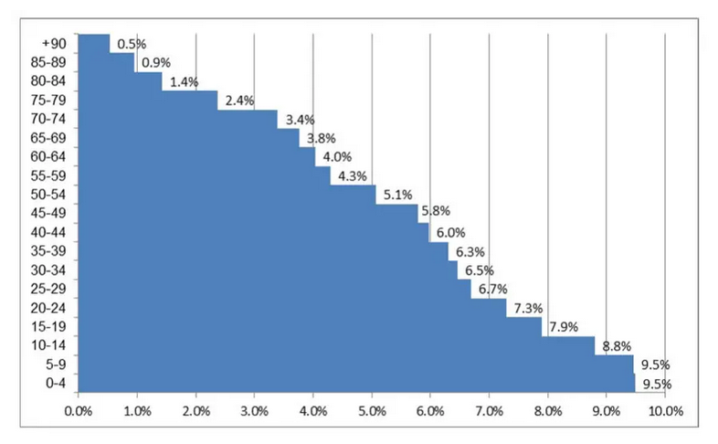 Vuonna 2023 3 266 714 henkilöä (27,8 %) oli ikäryhmässä 0–18, 5 551 150 (47,3 %) ikäryhmässä 18–65 ja 1 182 136 (10,1 %) yli 65-vuotiaita. Lisäksi 3 328 henkilöä oli yli 100-vuotiaita.