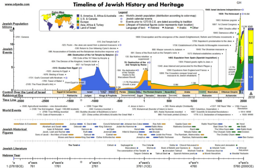 Julistekaavio yhdistää eri kentät yhdelle aikajanalle, kuten väestötiedot, kirjallisuus, juutalaisten ja maailman tapahtumat, perinteet, historialliset henkilöt ja paljon muuta.